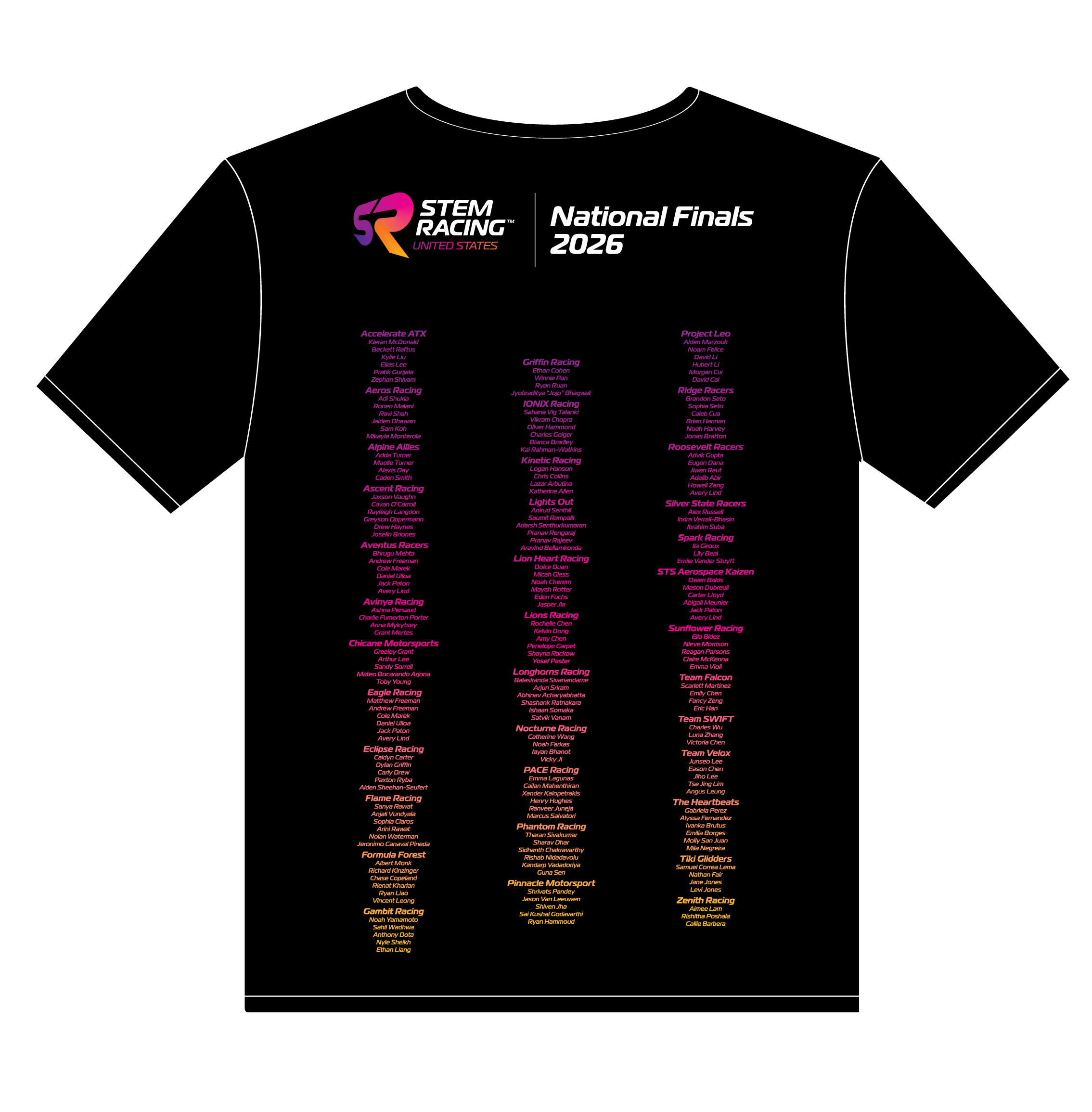 Commemorate the 2026 National Finals with this special edition T-shirt or Hoodie - featuring the 2025 National Champion car and the names of all teams and registered competitiors for the 2026 National Finals. Presales end March 11th!