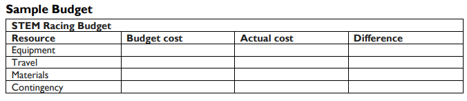There can be many different costs associated with an entry to STEM Racing, some of which may not be immediately obvious or expected. For example, they may be associated with risks you have identified or unexpected changes that you need to make as you develop your car. There may also be a scenario where items cost more than you expected, and you need to ensure your budget can accommodate all these. In finance this is called the budget contingency. You can decide how much contingency you need by assessing how likely each of the scenarios presented above are likely to happen.